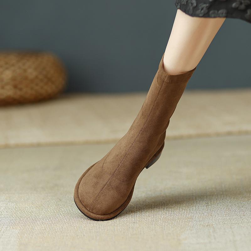 Herbst Vintage Runde Zehe Damen Ballerinas Stiefeletten Streetstyle Bankett Elastisch Schlank Kurz Botas Mujer