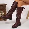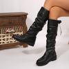 Comemore Plissierte Stiefel in Knielänge für Damen 2025 Neue Frühling- und Herbst-Western-Ritterstiefel mit Absatz Damenschuhe