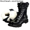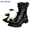 Militärstiefel aus Naturwolle für Herren, Arbeitsschuhe mit Stahlkappe, Winter Herren Echtleder Arbeitsstiefel, Cowboy Taktischer Stiefel Herren Winterstiefel