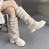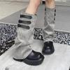 Belt Buckle Canvas Patchwork Knee Boots Women 2025 Autumn Punk Chunky Platform High Heel Botas Y2K Thick Bottom Boots