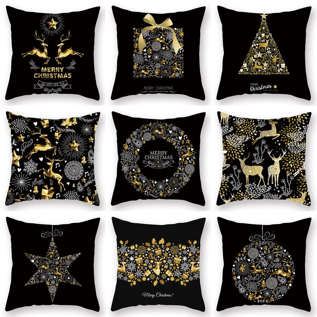 Weihnachts-Kissenbezug Goldener Elch Geschenk Neu Bedruckt Pfirsichhaut Kissenbezug Sofa Büro Kissenbezug