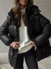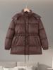 Damen Kapuzen-Baumwolljacke mit Reißverschluss Kordelzug Bindung Locker Warm Braun Baumwollkleidung Leichte Schlanke Jacke Täglicher Arbeitsweg Herbst und Winter