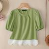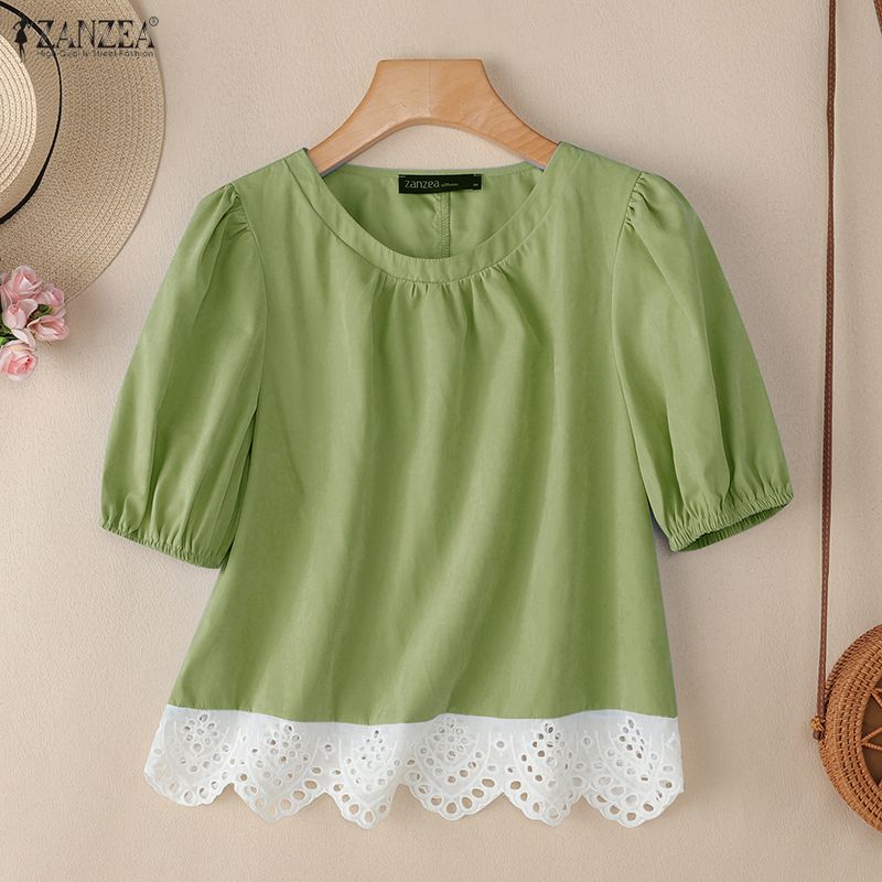 ZANZEA Damen Casual Rundhals Kurzarm Spitze Einsatz Bluse