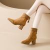 Retro Wildleder Spleißen Spitz Dicke Ferse Kurze Stiefel Damen Winter Neu Dünnes Temperament Matt Hohe Ferse Mode Stiefel 2025