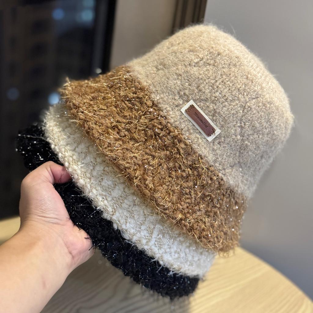 Neuer Plüsch Warmer Fischerhut aus heller Seide für Damen im Herbst und Winter Koreanische Version Vielseitig Gesicht zeigend Kleiner Topfhut Kurze Krempe Bucket Hat