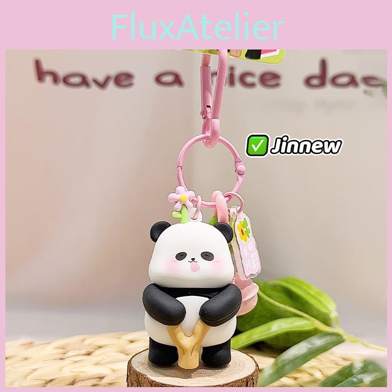 Charming Panda Fluffy Keychain Fun Zoo Character Keyring Colorful Resin Material Design