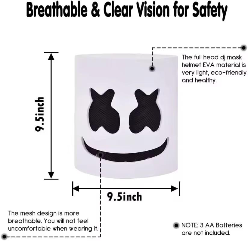 Halloween LED DJ-Maske, realistische Marshmello-Maske, atmungsaktive Helmmaske, strapazierfähig, ideal für Karneval, Festivals, Halloween-Partys und Cosplay