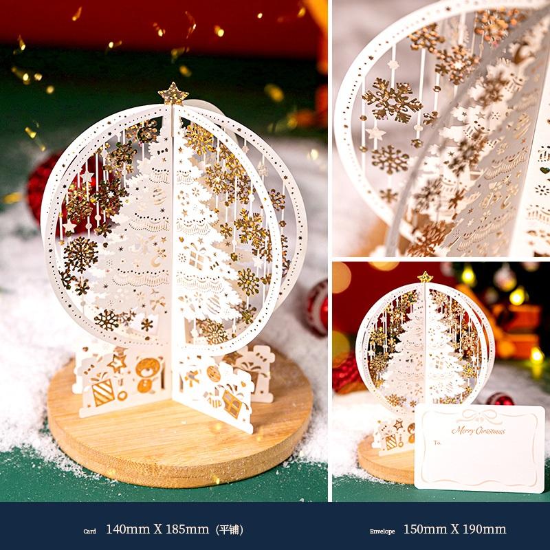 Dreidimensionale Weihnachtskristallkugel Grußkarte Goldfolienprägung Ausgestanzte Segenskarte Stereo Feiertagskarte