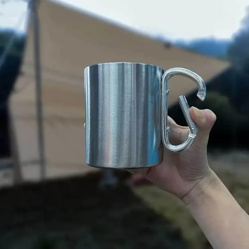 300ml Edelstahl Campingbecher Tragbarer Reisebecher mit Karabinerclip für Wandern Rucksackreisen Outdoor Trinkgeschirr Kaffeetasse