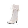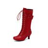 Herbst neue Damenstiefel Rüschenblattkante Schleife Ritterstiefel Band kurze Stiefel Übergröße Stiefel
