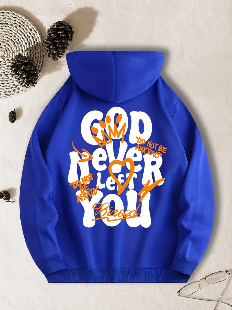 Cozy Brown God Never Left You Inspirational Hoodie Polyester Casual Sweatshirt with Flame Graphics Pockets Long Sleeves for Men