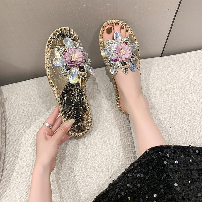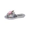 Aphixta Diamant Blumen Dekoration Flach Mit Hausschuhen Lässig Damen Süße Mules Draußen Sommer Sandalen Schuh Nähen Slide