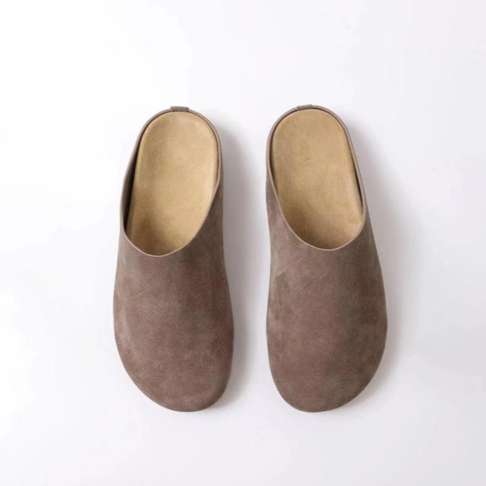 Neue Damen Wildleder Pantoletten Schuhe Designer Flache Runde Zehen Lässige Komfortrutschen Dicke Sohle Hausschuhe Retro Garten Pantoletten Clog Slides