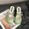 Sommer Schmetterlingsknoten Zehenabdeckung Damen Hausschuhe Elegant Dicker Absatz Kleid Pantoletten Damen Prägnant Tanzparty Ballschuhe