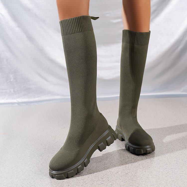 Außenhandel Übergröße Socken und Stiefel für Damen Herbstmodelle, Fliegenstrick atmungsaktiv einfarbig Muffin mit dicker Sohle europäisch und amerikanisch