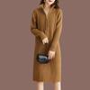 Mittellanger, lockerer, lässiger Langarm-Strickpullover mit halbem Reißverschluss und Stehkragen
