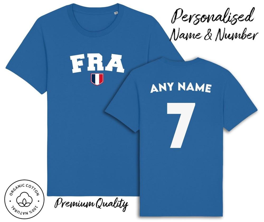Frankreich FRA T-Shirt Personalisierter Name und Nr. Erwachsene Kinder Baby, Fußball 6 Nationen