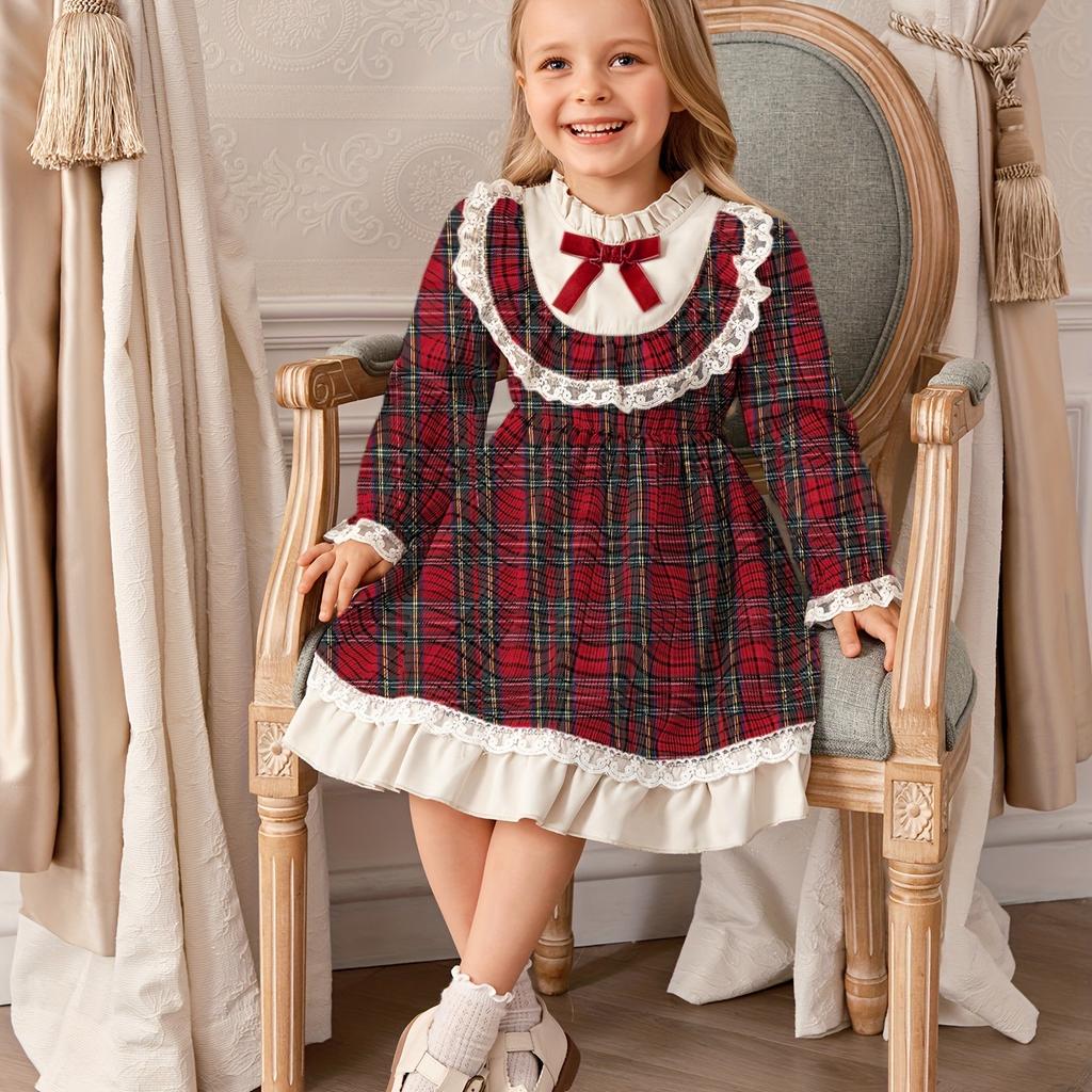 Kinderbekleidung Neues Herbst Winter Mädchen College-Stil Rüschen Karokleid