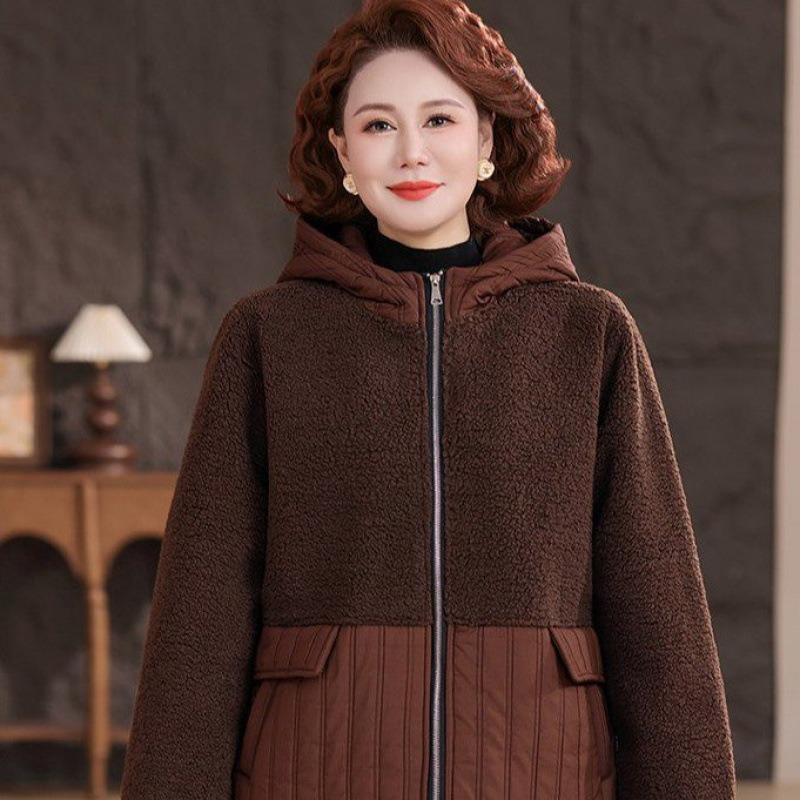 Mom winter cotton-padded jacket warm particles loose cotton-padded jacket piled thickened middle-aged women hooded cotton-padded jacket