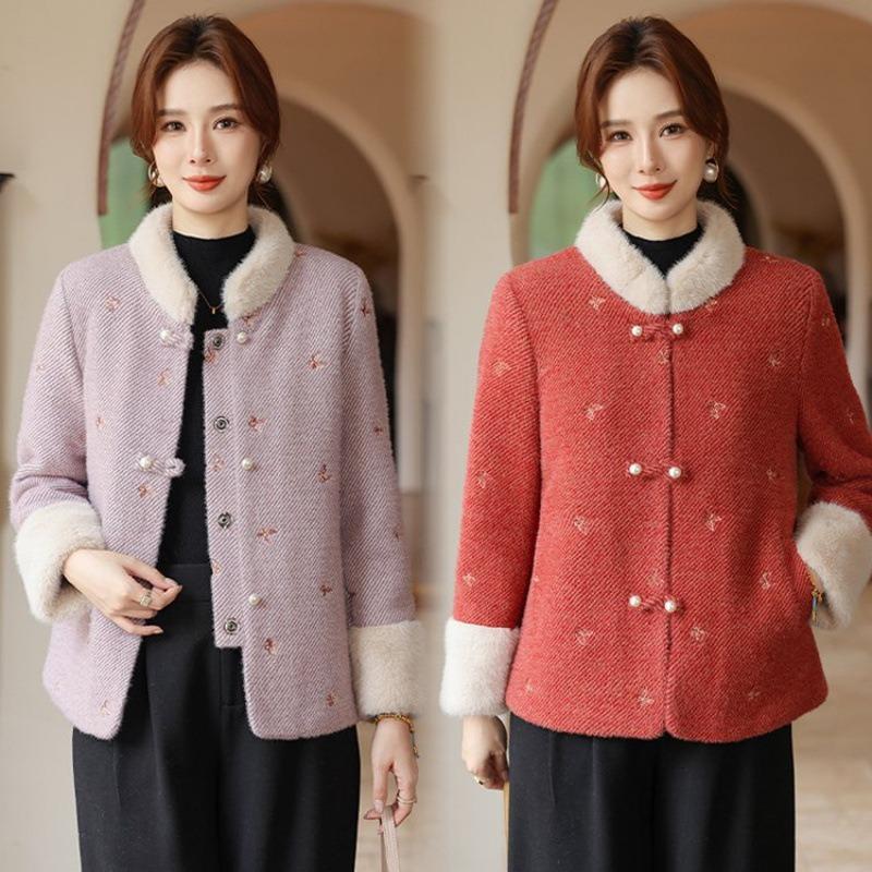 Chinese mink jacket autumn and winter mother winter clothing noble middle and old women's clothing new velvet thickened coat