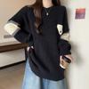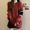 Frühling Herbst Neu Lässiger Stil Mode Farbblockdesign Lässiger Pullover Damen Mittelang Gestricktes Oberteil Trendig
