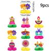 This Diwali-themed decorative set features nine intricately designed paper elephant paper honeycomb centerpieces. Crafted from durable paper material, each piece measures approximately 15 cm in length, making them ideal for festive tabletop decor. These lightweight decorations support vibrant scene arrangements for Diwali celebrations. Easy to assemble, they enhance party ambiance and can be gently wiped clean with a damp cloth for maintenance.