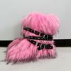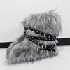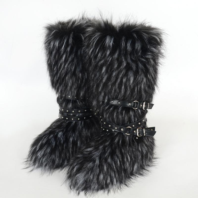 Damen Winterimitat Fuchsfell Stiefel Gürtel Punk Europäisch und Amerikanisch hoher Schaft 40 langer Schaft Schneestiefel Schuhe