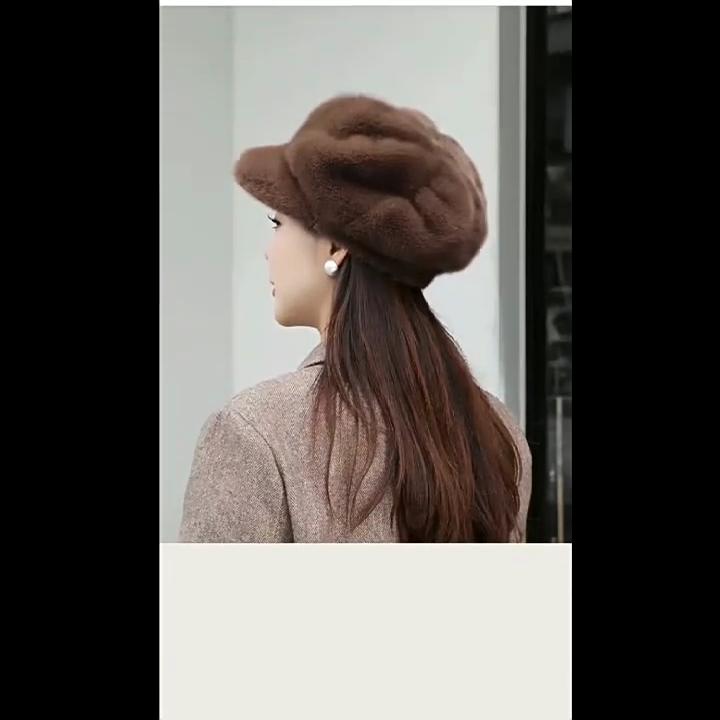 Damen Winter Warme Plüsch Baskenmütze - Weiches Achteckiges Wolkendesign, Leicht und Bequem, Pelz Eimerhut, Damen Baskenmütze, Damen Wintermütze