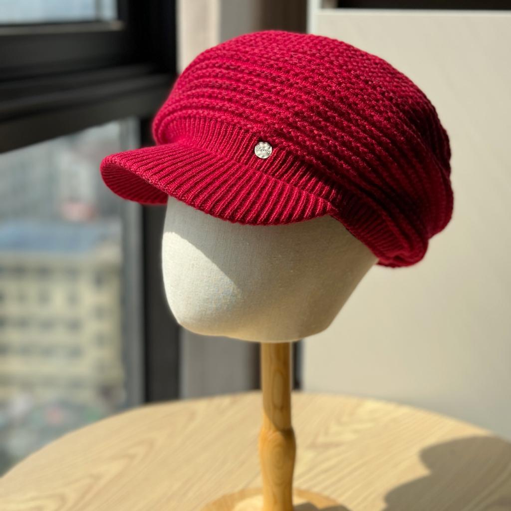 Herbst und Winter Einfarbige Gestrickte Achteckige Mütze für Damen Koreanische Version Ins Plus Samt Warme Mütze Japanischer Stil Vielseitige Wolke Entenzungen-Barett