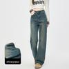 Izzue Women's Washed High-Waist Straight Wide-Leg Jeans