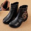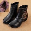 Johnature Ethnischer Stil Echtes Leder Dicker Absatz Kurze Stiefel Retro Bedruckt Warm Seitlicher Reißverschluss Damenstiefel