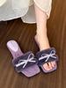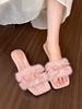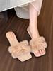 Weiche wachsartige Sweetheart-Zehenpartie, offene Zehen, Schleife, dicker Absatz, Herbst- und Winter-Flaum-Slipper, Ein-Wort-Baumwollmop