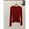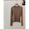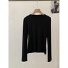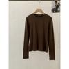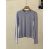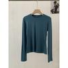 Frühling Herbst Rundhals Einfarbig Unterteil T-Shirt Damen Langarm Schlicht Allround Elastischer Pullover T-Shirt Top