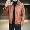 Plush Leather Jacket, Men's Pu Leather Jacket, Autumn and Winter Korean Edition, Lapel Business Jacket