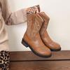 Vintage Western Cowboy Stiefel Damen Herbst 2025 Neue Grobe Ferse Bestickt Maillard Kurze Stiefel Martin Stiefel