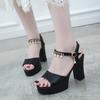 Exquisite Luxus Damen High Heel Sandalen Sommer Shopping Vielseitige Freizeit-Sandalen Dicker Absatz Dünner Riemen Mode Damen Schuhe