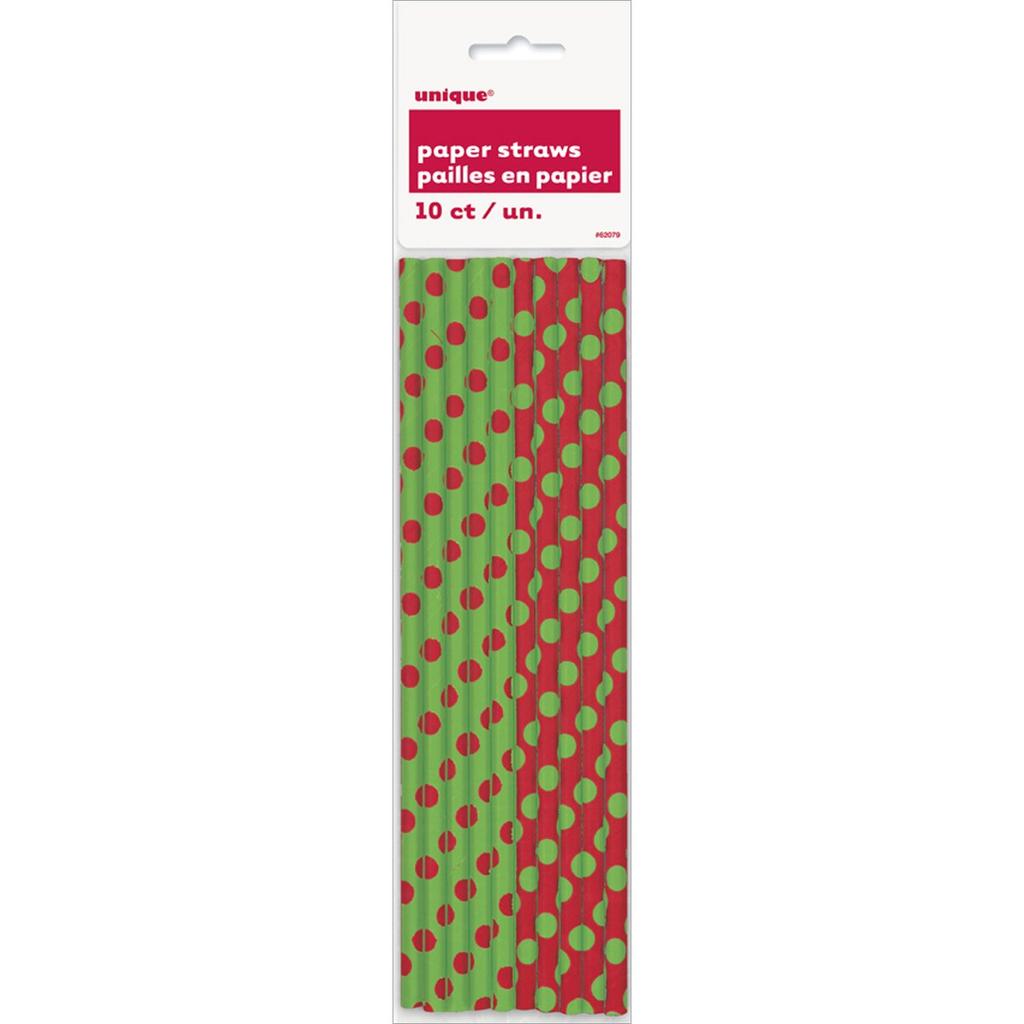 Unique Party Weihnachts-Einwegstrohhalme aus Papier mit Polka Dots (Packung mit 10)