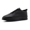 Herren Leder-Sneaker Einfarbig Klobige Sohle Skateschuhe Ganz Schwarz Schnürschuhe Komfortschuhe für Athleisure Alltagskleidung