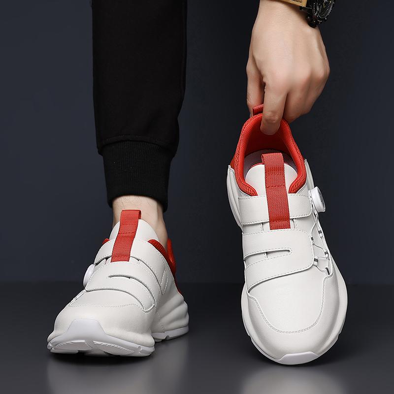 Men's Leather Lace-Up Casual Sneakers Breathable Male Flats Comfortable Walking Shoes for Men Lightweight Athletic Outdoor Shoes