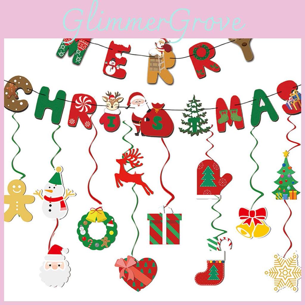 Hanging Holiday Party Decorations With Spiral Flags For Merry Theme Christmas