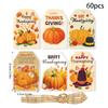 This Thanksgiving-themed turkey and pumpkin hanging tag set enhances party decor and gift packaging. Made from durable paper, each piece measures approximately 5.5*8.5 cm in size. The 60-piece set features vibrant designs suitable for festive celebrations. Ideal for decorating tables or wrapping gifts during Thanksgiving. Wipe clean with a damp cloth for maintenance.