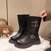 Maillard Plateau Martin Stiefel Damen 2025 Herbst und Winter neu kleine schlanke kurze Stiefel Gürtelschnalle mittelhohe Schaft Ritterstiefel