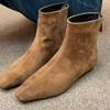 Calfskin version! Huge good-looking short boots for women's versatile commuting style square head rear zipper and ankle boots inner height-increasin