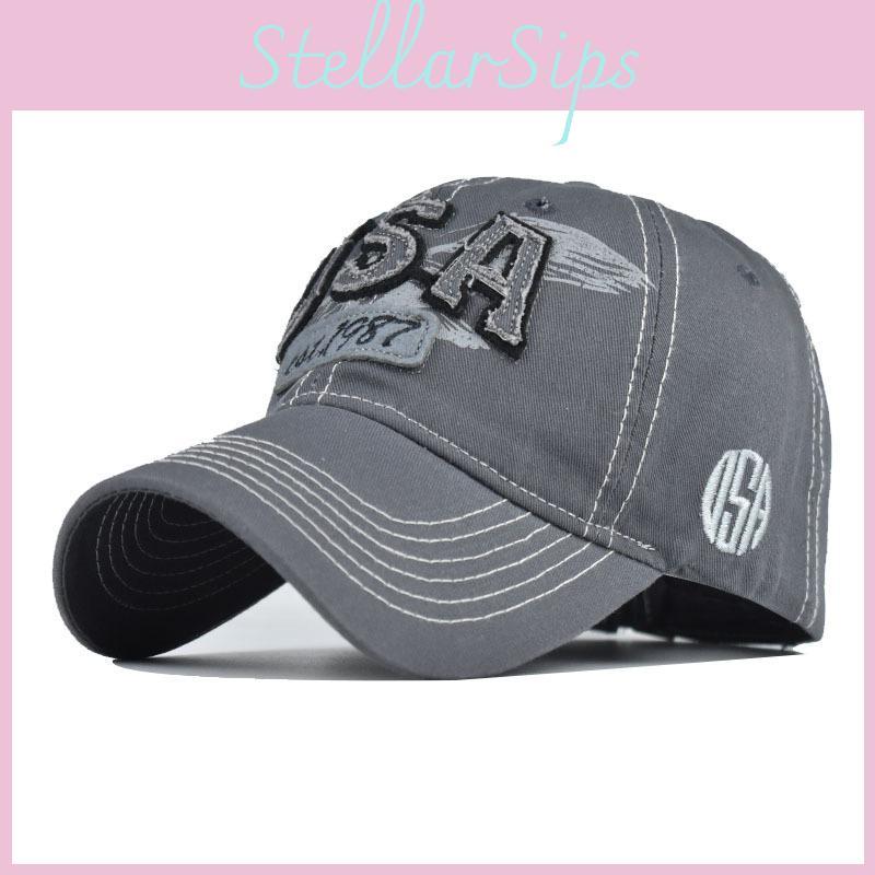 Usa Cotton Baseball Cap With Curved Brim And Embroidery For Outdoor Activities