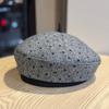 Neue Herbst- und Winter Fischgrät-Punkt Baskenmütze Damen Modisch Sanft und Süß Kleiner Kürbishut Malermütze mit Gesicht