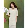 Sancai 2025 Winter V-Ausschnitt Gestricktes Faux-Zweiteiler Spitzenkleid