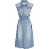ONLY Women's Lapel High-Waist Sleeveless A-line Denim Midi Dress