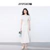 JOY SPEAKER Women's 2025 Summer Round Neck Pleated Waist Midi Dress