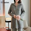 FANZHEEN Women's Hooded 100% Wool Knit Midi Dress