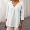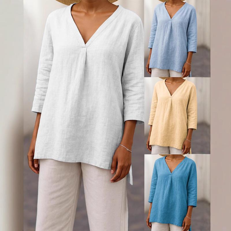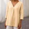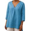 2025 Neu Damen Casual V-Ausschnitt 7/4-Ärmel Lockerer Pullover Einfarbig Mehrfarbig Damen Oberteil T-Shirt